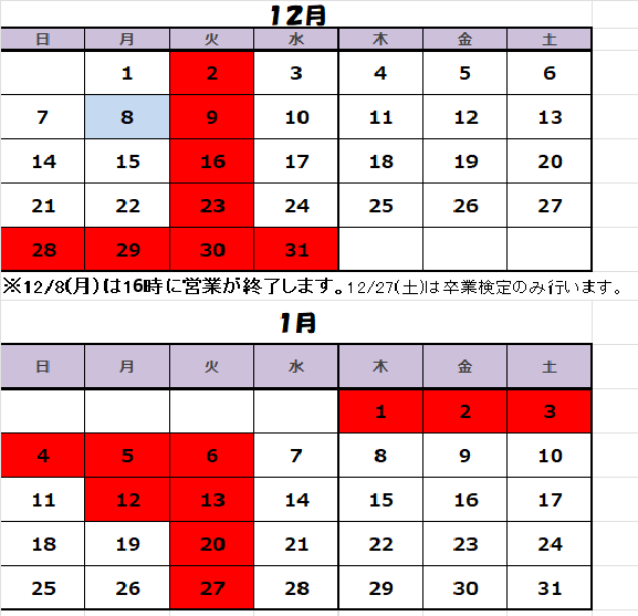 ※火曜、祝日は休校日